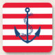 Coaster set shown in navy blue, red and white stripes with a maritime anchor symbol.