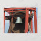 Maritime brass bell with its shadow hanged on a red painted steel lever