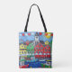 Colourful stylised painting scene of a Maritime Hometown Festival by Popular Artist Lisa Lorenz now Available on an stylish All-Over-Print Tote Bag.