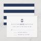 Designed to coordinate with our Maritime nautical wedding invitation collections, this coastal chic wedding response card small ship's anchor illustration at the top with elegant navy blue lettering, delicate rope and knot detailing, and a navy and white horizontal striped backer.