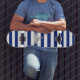 A silver chrome like fishing boat design on a navy blue stripes decor. A modern nautical gift.