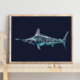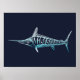 Modern marlin fish wall art with a clean line illustration and bold navy background. This sea creature print adds an easy coastal look to beach house decor, bathrooms, offices, and ocean themed rooms. Hang it as a statement piece or pair it with the matching Sea Creatures set for a cohesive gallery wall.