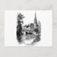Detailed hand-drawn sketch of Marlow, featuring the iconic church spire, stone bridge, and riverside setting. A timeless black and white illustration capturing the charm of this historic English town. Perfect for those who love traditional artwork, architecture, and countryside views.