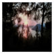 Marmaris Sunset Framed By Palm Trees is a painting of an Aegean vacation sunset. A beautiful evening in a natural environment and scenery of sea and mountains. Cool turquoise and blue hues reflect and outline the silhouette of the mountainous coast.