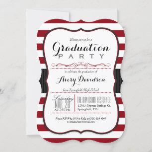 Maroon, Burgundy & White Stripes Graduation Party Invitation