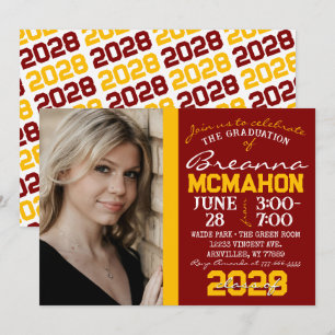 Maroon and White Varsity Team Number Athlete Grad Invitation