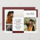 Stylish graduation announcement card and party invitation features three senior photos to give you plenty of opportunity to use your favorite senior pictures. Personalize the custom text with your grad's name, school, and other details. This two-sided card design includes a matching pattern on the back. Available in red, orange, green, blue, purple, maroon, burnt orange, black and gold. Matching products available.