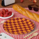Maroon and Orange Chequered Vintage Paper Plate