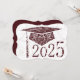 Floral designs on graduation cap, background and year. Maroon graduation cap on a white background. The back has a maroon background with white lettering for the graduation announcements.