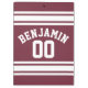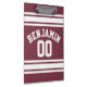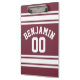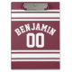 Maroon and White Jersey Stripes Custom Name Number Clipboard