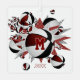 This cool girl's basketball ornament features an "explosion" of varied size basketballs that have alternating maroon, white & black panels, and grey and maroon star shapes, upon which you can personalise her jersey number - the maroon star has a tiny pattern of white polka dots - customise the athlete's name on the front & commemorative year on the back on a maroon colour strip at the bottom edge of the ornament - katz_d_zynes