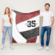 This cosy volleyball themed fleece blanket for her features the image of an abstractly oversized maroon, black and white stylised volleyball that covers the entire blanket - personalise with the athlete's name and jersey number - by katz_d_zynes