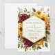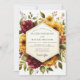 A rich tapestry of deep maroon and golden-yellow blooms creates an opulent and romantic autumnal aesthetic. Lush greenery and delicate berry sprigs intertwine, evoking a feeling of bountiful harvest. This design whispers of cozy, elegant celebrations.