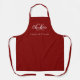 A maroon, burgundy background. Personalise and add your first name, monogram initials and full name. Use your back space key to delete if you want the apron without your full name.