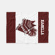 Stay warm on the side lines with this cheerleader themed fleece blanket done in maroon and white, with graphics of a cheerleader's dress, megaphone, and pom poms, in the middle. Personalise the white name for your favourite cheerleader.