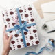Maroon Cheerleader Pom Poms & Hearts Pattern Wrapping Paper