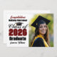 Customize your own maroon high school Class of 2026 graduate photo announcement card for a high school or college graduation. Cool varsity letters for the year on great custom cards for seniors. Classic typography next to your student photograph.