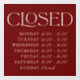 Maroon Elegant Serif Closed Sign Store Hours