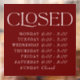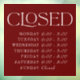 Customise all of the colours and text below "CLOSED". "CLOSED" graphic can be scaled or edited in colour, or deleted to add your own text. Transparent or opaque available.