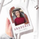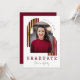 Modern Arch Photo Graduation Invitation in school colours maroon and gold. Celebrate your grad in style with these modern burgundy maroon and gold graduation invitations featuring the graduate's photo on the front inside an arch shape with name in script lettering under the words GRADUATE and class year on the front. On the back is the graduation party information including script "She did it" and graduation party details for all your invited guests. Please message me for custom colours if you can't find what you need.