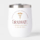 This maroon and gold custom medical school graduation wine tumbler gift features modern typography for a class of 2024 graduate. Customise with your graduating year under the caduceus for great personalised nurse or doctor keepsake for a graduating physician.