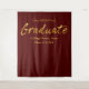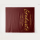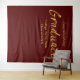 Modern, simple and minimalist congratulations graduate welcome banner, photo wall backdrop. Designed with trendy gold handwritten brush script typography on maroon background to match school, college or university colours. Customise school or college details and class year.
