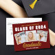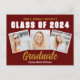 This trendy maroon, gold, and white custom senior senior portrait photo collage graduate announcement card magnet features varsity letters for the Class of 2025 under your college or high school name. Customise these magnets with your favourite 3 graduation photographs.
