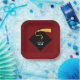 Creative graduation party or event plates for class of '26 grads featuring funny line and classic black graduation cap with gold tassel on maroon background.
