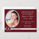 Lovely maroon and white graduation party invitation. A oval cut out photo area just for your graduate's photograph and pretty graphics of a ruby and silver decoration. Personalise the photo and text for your grad's special day.