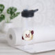 Beautiful water bottle featuring maroon and beige gold flowers with green leaves .