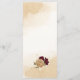 Beautiful fall wedding menu card featuring maroon and beige gold flowers with green leaves .