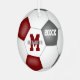 This custom team colours soccer ornament for a boy or girl features the realistic image of a soccer ball upon which you can customise the athlete's name, monogram and commemorative year - the black panels of the soccer ball graphic have been recolored maroon and grey - by katz_d_zynes
