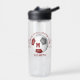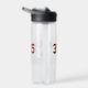 This team colours soccer themed water bottle is suitable for girls or boys and features the realistic image of a soccer ball that has maroon, grey and white panels, upon which you can personalise the athlete's monogram or varsity letter - customise the school or club name encircling the top of the soccer ball, athlete name below, and jersey number on the sides of the bottle - by katz_d_zynes