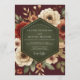 Embrace a romantic, autumnal aesthetic with this sophisticated design. A lush bouquet of ivory peonies and terracotta blossoms is set against a deep maroon backdrop, creating a moody and elegant atmosphere. Accents of soft green foliage add a touch of natural beauty, perfect for a chic fall nuptial.