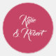For the bright themed weddings inspired by sunset and citrus. Modern minimal and elegant viva magenta with mid-century calligraphy with bride and grooms names personalised wedding sticker. This product is easily editable. If you need help with the customisation of this product or you need more matching products for this collection kindly message me via Zazzle.