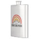 The product is a good size and came exactly as it was pictured. The lid is not attached to the flask, which could be dangerous on drunken nights... The print came out surprisingly well and looks very sharp. Would definitely recommend.