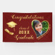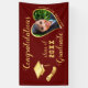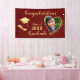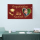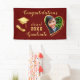Create a unique maroon red and gold graduation banner for the class of 2025 graduate with a heart-shaped photo, Congratulations saying, and grad's cap and diploma illustrations. Please personalise with the graduate's name and surname, upload a custom photo via template, and change a year before ordering. You can also change the background colour inside the design tool to match your school colours.