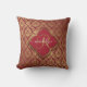 Maroon Red Gold Fleur Damask Pattern Monogram Cushion