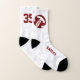 These maroon and white team colours volleyball socks for girls can be personalised with her name and jersey number plus school name and mascot name in maroon in a varsity letter style font - her name is situated on a maroon and white volleyball graphic - by katz_d_zynes | see more team colour combinations and girls' volleyball gifts in my Volleyball school colours team spirit gifts collection >>> https://www.zazzle.com/collections/119253642051968072