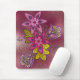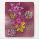 Inspired by henna mehndi patterns, this floral design mouse pad makes a beautiful and functional work of art for home or office. Magenta, violet, red and maroon colours decorate these stylised tulips and daffodils, accented by cool shades of green.