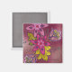 Inspired by henna mehndi patterns, this lovely floral magnet makes a beautiful and functional work of art for home or office. The stylised daffodils, tulips, and maple leaves decorate this square magnet in shades of magenta, maroon, red and violet, accented by cool shades of green. Makes a great gift or collectable!
