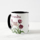 This mug features six maroon and white tulips. This mug will make a wonderful gift for a special girl in your life. The name on the mug is customisable with the name of the recipient.