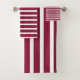 Classic Bath Towel Set with cabana stripes in Maroon ( #8A1538) and white . Personalise it now with a name . You can also add a monogram /logo etc . Design by Alma Wad .