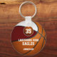 This boys' basketball keychain features a simple basketball graphic with maroon and white school colours and easily customisable school name, mascot name and player name--the player's jersey number is on a tiny basketball - by katz_d_zynes | See more basketball team colour combinations in katzdzynes’ collection “Basketball keychains and backpacks for boys” >>> https://www.zazzle.com/collections/119832025911486781