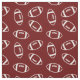 American football fabric with a simple design of the outline of footballs in white against a maroon background.