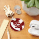 This team colours volleyball keychain features the image of a maroon and white volleyball on the front and a simple white volleyball on the back - personalise with the athlete's jersey number on the front and name and team name on the back - by katz_d_zynes