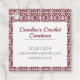 This illustration of white crocheted lace covers a background of dark colour for high contrast. Great classy look to tag your finished crochet products. Larger size is great for blankets or sweaters. Set your own business name and contact information, as well as care instructions for the crocheted item. Comes with twine for attaching to the item.