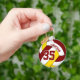 This personalised boys' volleyball keychain features a maroon, yellow and white volleyball upon which you can customise the player's name and jersey number - by katz_d_zynes