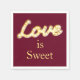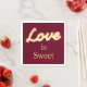 Love is Sweet, written in marquee lighting on a trendy marsala background gives this napkin vintage sparkle and glamour. It makes a nice addition to the dessert table. Scroll down to see the complete wedding collection. If additional items are needed for your event, just contact us at prettyfancyinvites@gmail.com with your request.