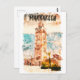 Stylish retro watercolor artwork postcard showing the scenery and breathtaking architecture and landmarks like the koutoubia mosque of Marrakech or Marrakesh in Morocco. Works great as a travel souvenir and also gift idea to memorise your vacation in the Maghreb country.